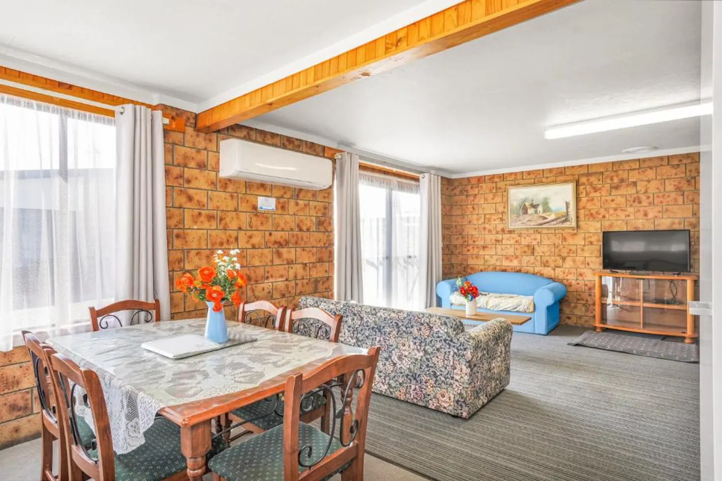 Most of these units have recently been refurbished and are clean and tidy and comfortable. They have split system for heating and cooling, there is a fully functional kitchen and laundry with a washing machine. The bedrooms are comfortable, and the linen is professionally cleaned. We have done our best to provide you with a fully self-contained unit, that is clean, comfortable, and affordable. We are sure that you will enjoy your Holiday at Kellraine Holiday Units. Please note that when you book for two people, you are booking one bed, if you need a second bed, please book for three people, or you will be charged $50 per person per night for the extra bed.